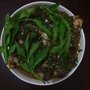 下辅料(切细)汤熟,加花椒、味精搅匀淋鱼上,上香菜装饰即可。
