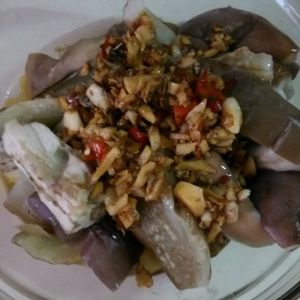 茄子切块,用盐水泡一下,上蒸锅蒸15分钟。