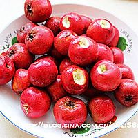 如果想要这样(第六个图)一样,各式各样的,就把山楂中间部分去核,切两半,然后中间夹各种东西再进行步骤就好啦!