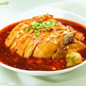 做调料,所有蒜蓉、姜汁、老抽少许、生抽适量、醋、白糖、辣椒油、熟芝麻、花生末、葱花、花椒油、麻油混合在一起,拌匀后淋在鸡上。