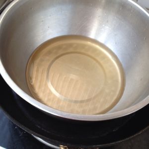 将水白糖吉利丁片果汁混合放在盆里,在火上煮半锅热水把盆放进去隔水加热,待所有融合在一起关火。