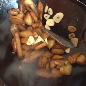 翻炒至茄子软烂加入剩下的蒜,翻炒一分钟出锅