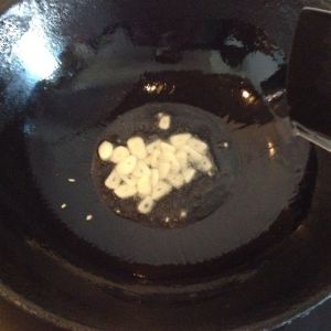 锅中放适量油,油热后放一半的蒜爆香