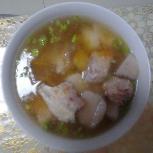 半个小时候放入少量盐,盛出撒上香菜,葱末即可