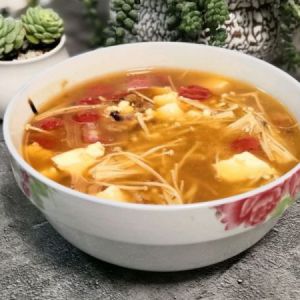 油锅烧热倒入玉米油,大火煸炒嫩豆腐,圣女果,