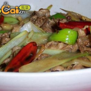 锅内留少许底油,放入葱丝和姜丝,煸出香味后放入爆好的羊肉,淋入少许料酒,再爆炒一分钟左右就可以了。