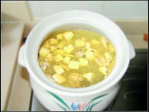 开始煲的时候不要放盐,待半小时后即将起锅时,放入适量的盐,再稍微炖一会儿,就可以喝了。
