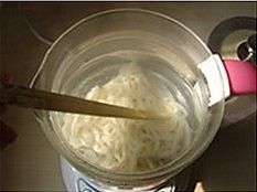 养生壶内加入水,放在底座上,插上电源,选择药膳功能,等水烧至沸腾后,放入乌冬面。等面稍微煮一会儿,用筷子慢慢拨散
