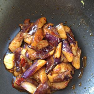 锅烧热,倒油。放入茄子(油要没过茄子)这一步很关键,茄子的香味和颜色都在这一步。