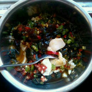 在切好的豆腐上撒上皮蛋红绿椒,最后浇上调好的姜料,大功告成啦~