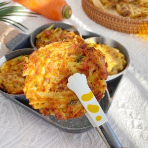 将胡萝卜、土豆和火腿肠切成丝,放进容器中,再加入泡菜、葱花、鸡蛋和食用盐;