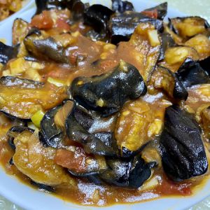 油温5成热下锅炸茄子,大约炸5分钟左右