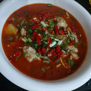 调好味,出锅。撒上葱花,干辣椒,烧热油浇在上面。