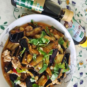 茄子加入少许淀粉,放入锅中过油捞出控干