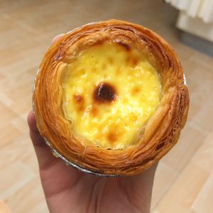 嘻嘻~,出烤箱大概是酱紫的(可以吃了)因为我比较想把蛋挞上烤的黄黄的,所以我会220上下火再烤3-4分钟左右