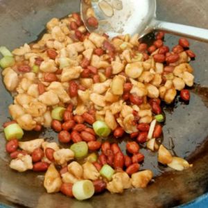鸡胸肉洗净切成小丁加盐、味精、料酒、白胡椒粉、酱油、植物油腌制30分钟。