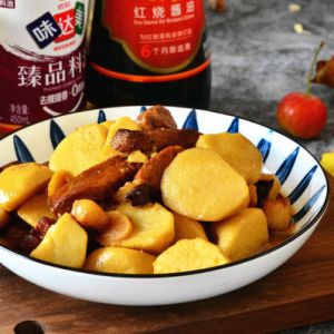 将芋头加入肉中拌匀,继续炖煮20分钟