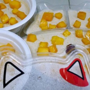 先把QQ糖融化备用,把牛奶热至80度一次加入沙糖、搅拌融化,加入淡奶油搅拌均匀,加入芒果泥搅拌均匀