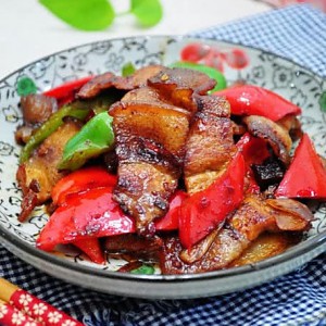 继续倒入彩椒,大火翻炒至断生,把肉回锅继续翻炒均匀即可