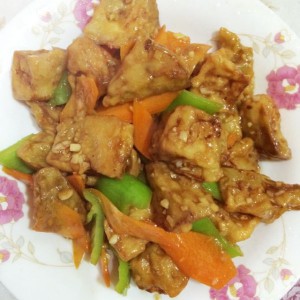 青椒和胡萝卜洗净切片备用。蒜切成蒜末备用。将油烧至七成热,把果好面粉的茄子炸至金黄色捞出,然后再将油烧至九成热,再炸第二遍,约半分钟,捞出。