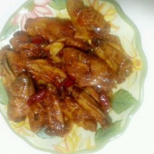 煎鸡翅,两面煎成金黄色就好,然后扔几粒干辣椒进去(这个依照个人口味可以选择不放,我是东北人,喜欢辣椒,所以就习惯放)