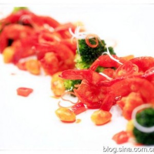 翻炒均匀即可出锅装盘,撒上红椒丝葱丝点缀。