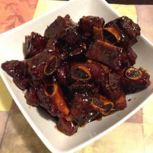 这是我第一次做排骨的作品 也是有一次烧这样的鱼肉荤菜 应该说很成功 我老公不会啃骨头的人却吃了过半 所以从来没做过菜的亲们不要害怕 其实很简单~