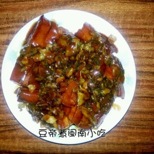 蒸好后把汁倒进锅中,拿个盘倒扣倒出。烧开加一点点水淀粉勾兑淋在上面