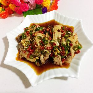 蒜末,青红尖椒圈,一勺自制辣椒油,一勺糖,一勺盐,一勺鸡精,两勺生抽,两勺香醋,一勺香油,一勺仲景花椒油,搅拌均匀调成料汁儿备用。
