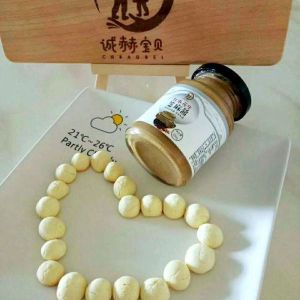 将奶粉,低筋面粉,玉米淀粉,依次加入鸡蛋液中,加入牛奶,加入适量的红枣花生酱。