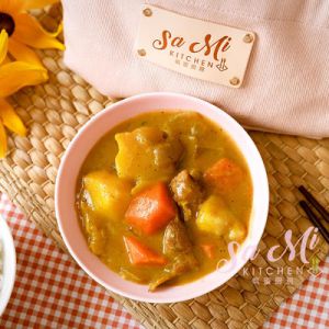 关火放入咖喱酱块,待咖喱块彻底融化后