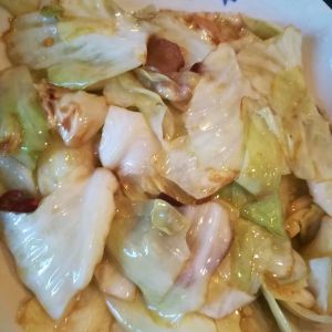 把辣椒和蒜放下炒香,然后放包菜一起炒软后,加米醋,耗油,生抽,盐,糖,快速炒熟。。起锅即可了!