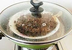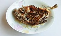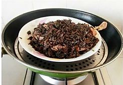 炒过的梅干菜码在鸭子上,入蒸锅蒸约20分钟至肉软烂