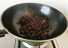 锅放油,下葱、姜末炒香,将洗净的梅菜倒入锅中翻炒,调入生抽、腐乳汁翻炒均匀,关火