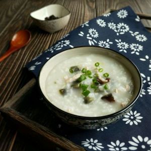 锅中加水煮开,放入大米煮20分钟,这时粥开始变稠