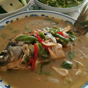加点水,盖过鱼就好了,放调料,放点大青椒,喜欢吃辣可以放点野山椒