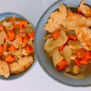最后放胡萝卜 再翻炒一下 加水加咖喱