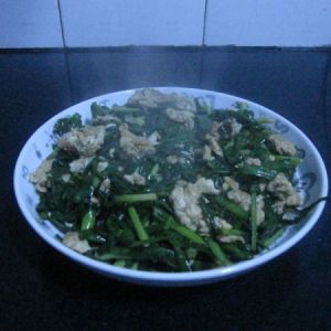 锅内稍稍多放一点油,鸡蛋打碎,放入少量盐和清水,搅均!下锅小火煎熟,放水是因为蛋会很嫩!煎熟之后将蛋盛出备用!