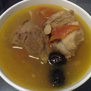 番茄切大块,炒翻沙。放入排骨汤内,加小半勺醋,然后小火慢炖再一小时。