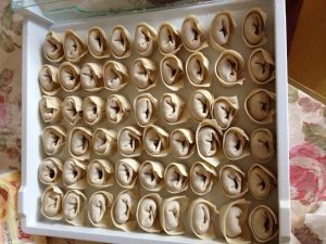 买好皮将肉馅放进包成馄饨
