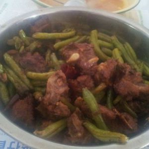 放水把排骨淹没煮,如果赶时间可以放水后在高压锅里压10分钟,水收的差不多就放加菜,我女儿不喜欢胡萝卜就放的四季豆,烧2分钟在加一半的水,再次收完水放鸡精起锅!
