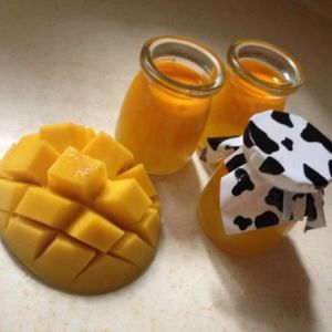 将水烧开兑入芒果布丁粉1:10搅拌到布丁粉融化。在次大火煮沸
