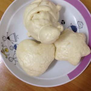 将面团拍上些干面粉这样不会粘手,用手揉面团将面团中的气泡排出,这样做出的馒头才会漂漂,揉好面后做出你能想到的任何造型,放置20分钟,上锅蒸,蒸锅垫好蒸布,放上馒头小火5分钟,大火15到20分钟,热气腾腾的漂漂馒头出锅了!