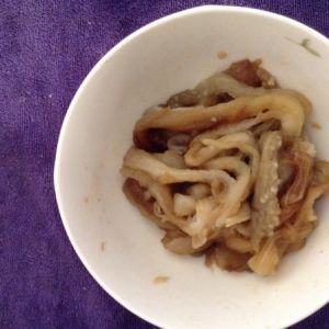 撕成条状,然后加入鸡精,醋,盐,生抽 。喜欢吃辣的还可以加辣椒。拌匀。放置冰箱冷藏一会就可以开吃啦!