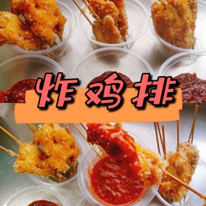 是不是越来越有样了?裹好面包糠的鸡排竹签用剪刀✂️剪短一点,这样方便后面的制作