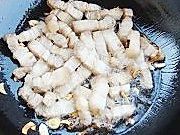 热锅下油,放姜片葱花炒香,下沥过水的五花肉翻炒至出油。