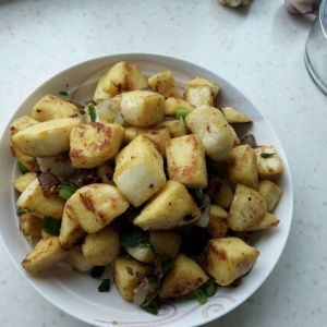 油放入锅里,葱头加入翻炒,放入馒头翻炒,炒到有颜色为止。