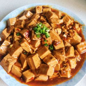 在锅中加入少许食用油,放蒜末煸炒出香味,加入豆瓣酱,盐和酱油翻炒,随后倒入能淹没豆腐的水,将豆腐放入锅中,调大火煮五分钟
