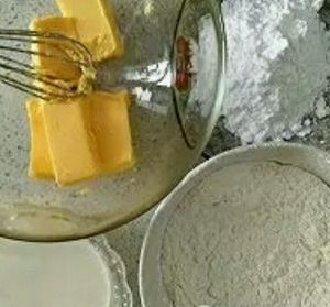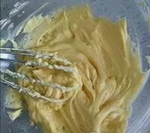 2. 糖粉分两次加入到黄油中,搅拌至颜色变浅。此步骤不用打发