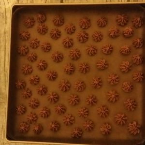 5. 装入裱花袋中,挤出自己喜欢的形状。因为是夏季做,此款面糊比较容易挤~烤箱150度中层20分钟左右。最后几分钟一定要盯紧烤箱,以免上色过度。